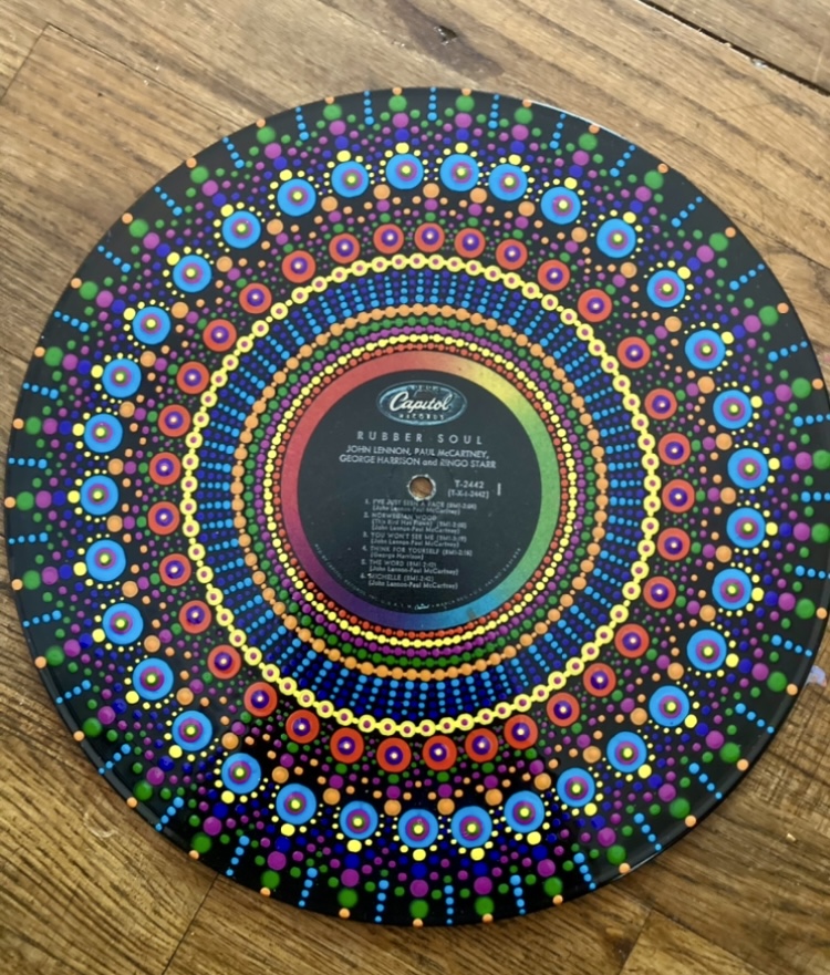Julie, a full time special education teacher and mother of two teenagers, finds her peaceful place in her art. Julie likes to experiment in many forms of art. Her Mandala dot painting on records are a show stopper. She also does acrylic paint pour with a resin seal on Michigan magnets and much more. And we can’t forget about her college and professional sport’s jewelry!