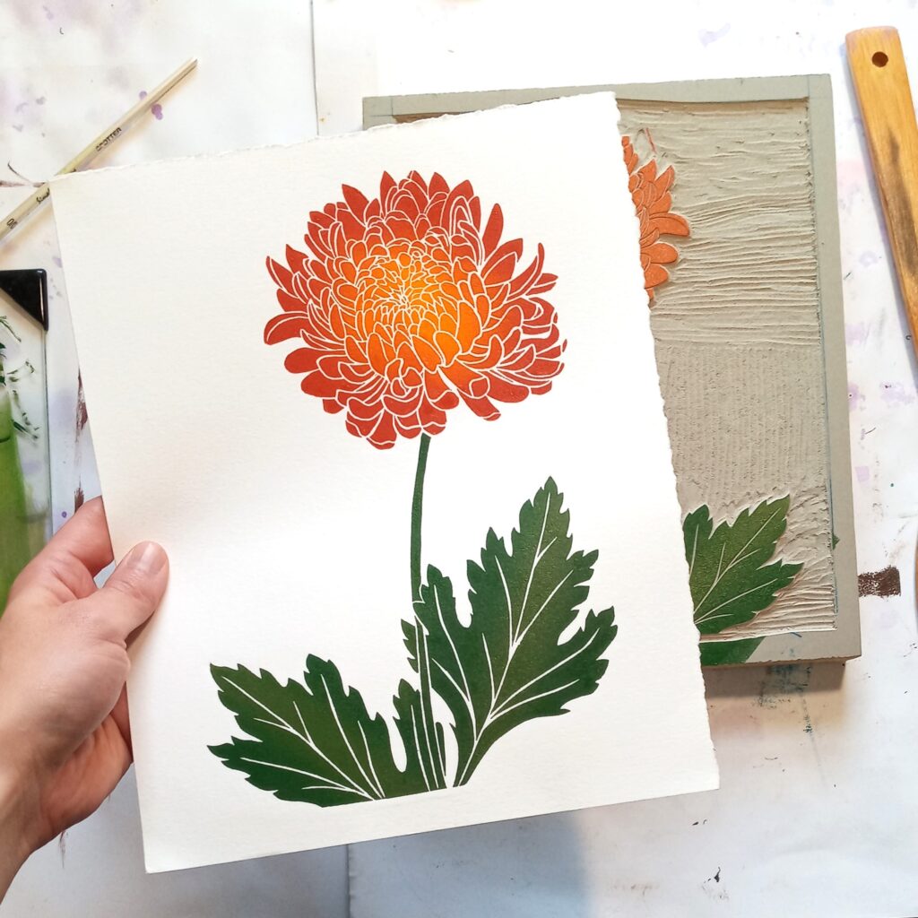 Today, Sarah focuses on linoleum printmaking and painting, drawing inspiration from the natural world, especially plants and wildlife. Her work blends careful detail with a desire to share quiet moments of beauty and connection.